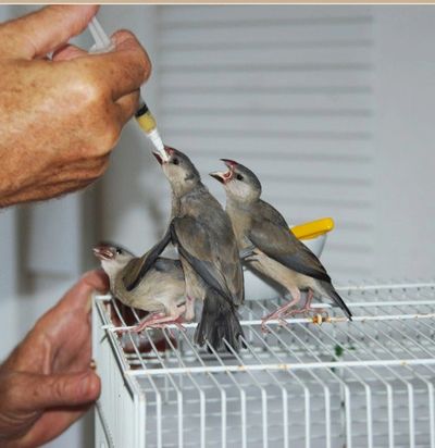 The "belly" area (right in front of the vent) of all the birds listed here can be felt to determine whether or not more feed needs to be given. The area will protrude a bit like a round paunch but should not feel taut or stretched. Sometimes babies will ask for more when they are already full, Mejiros particularly, and if fed, may bring up food and aspirate. All of these birds have a tracheal (breathing) hole that is very noticeable when they gape; it is behind the tongue on the lower mandible (lower beak). Do NOT try to push the syringe down this hole, but rather put it behind the hole.